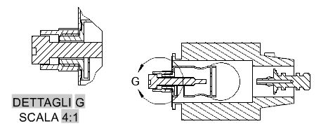 Una vista di dettaglio è costituita da una vista 2D contenente una parte di un'altra vista 2D ingrandita di un fattore di scala superiore. È possibile ottenere una vista di dettaglio circolare o rettangolare. Questo comando è supportato solo nel layout e richiede una vista 2D.