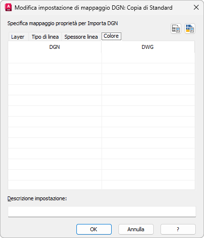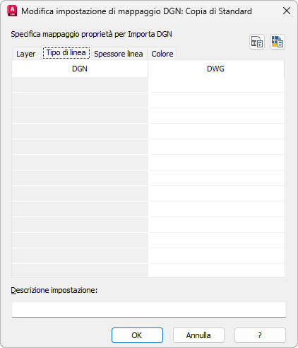 Finestra di dialogo Modifica impostazione di mappaggio DGN
