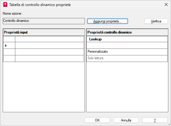 Finestra di dialogo Tabella di controllo dinamico proprietà