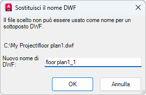 Digitare un nome univoco per il file sottoposto DWF o DWFx che si sta tentando di collegare.