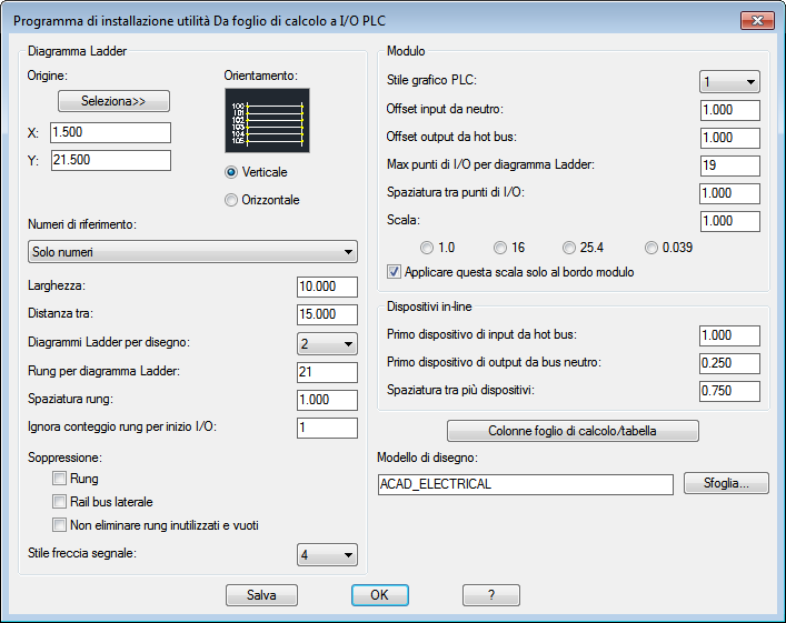 AutoCAD Electrical toolset crea un set di disegni I/O PLC in base alle informazioni riportate nel foglio di calcolo PLC. Diagrammi ladder, moduli, componenti in linea e filo vengono inseriti automaticamente.