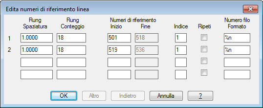 Nella finestra di dialogo Edita numeri di riferimento linea viene visualizzato un elenco di diagrammi Ladder del disegno.