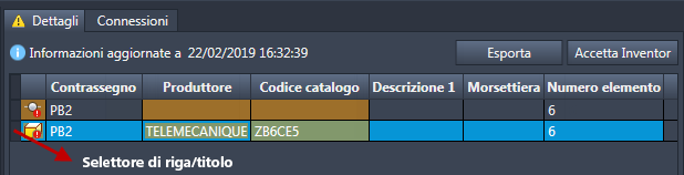 Fare clic sul selettore di riga (titolo) per selezionare l'intera riga per il componente di AutoCAD Electrical toolset.