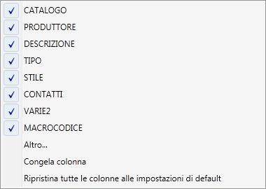 - Apre la finestra di dialogo Colonne da visualizzare in cui è possibile modificare la visibilità di tutte le colonne nella tabella di database visualizzata.