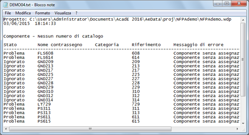 Utilizzare questo strumento per identificare e correggere alcuni tipi di problemi relativi a componenti e fili. Il rapporto include i seguenti tipi di problemi: