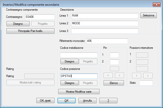 Selezionare il componente/cavo/quadro di posizionamento da modificare: