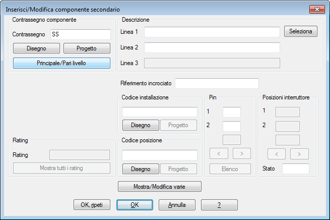Nella sezione Contrassegno componente della finestra di dialogo Inserisci/Modifica componente secondario, fare clic su Principale/Pari livello.