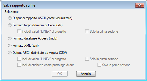 Nella finestra di dialogo Generatore di rapporti, selezionare Salva su file.