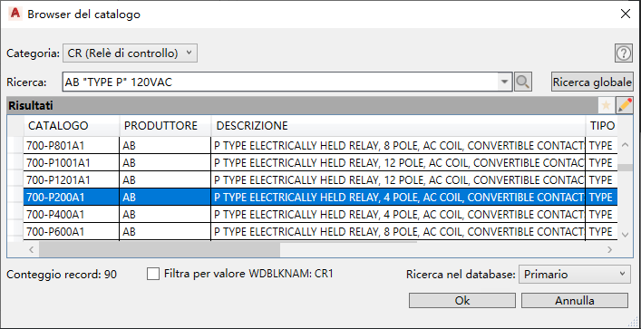 Per i componenti dello schema, AutoCAD Electrical toolset utilizza una relazione di tipo principale/secondario. Il simbolo di bobina principale e i simboli dei contatti secondari rappresentano una bobina di commutazione con un certo numero di contatti. Quando viene inserito il simbolo di bobina principale, ad esso viene assegnato un contrassegno componente univoco. Quando vengono inseriti i simboli dei contatti secondari, il secondario viene correlato al principale e il contrassegno del principale viene assegnato al simbolo secondario.