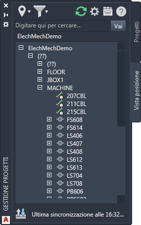 Se il progetto fa parte di un'associazione elettromeccanica, l'icona accanto a ciascun dispositivo indica il tipo di dispositivo e lo stato del collegamento.