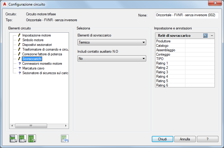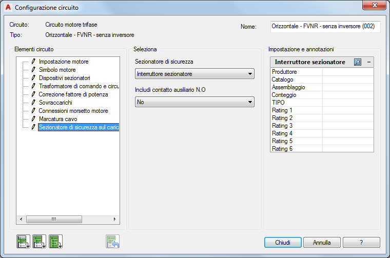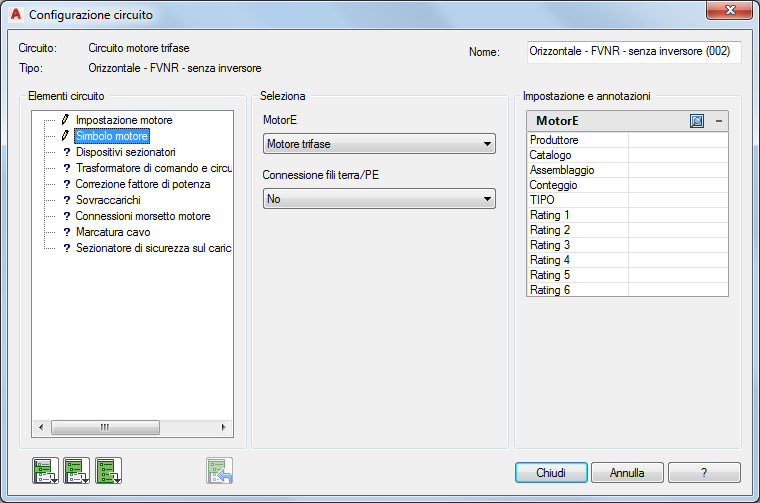 Utilizzo di Generatore di circuiti per l'inserimento e la configurazione di un circuito motore trifase.