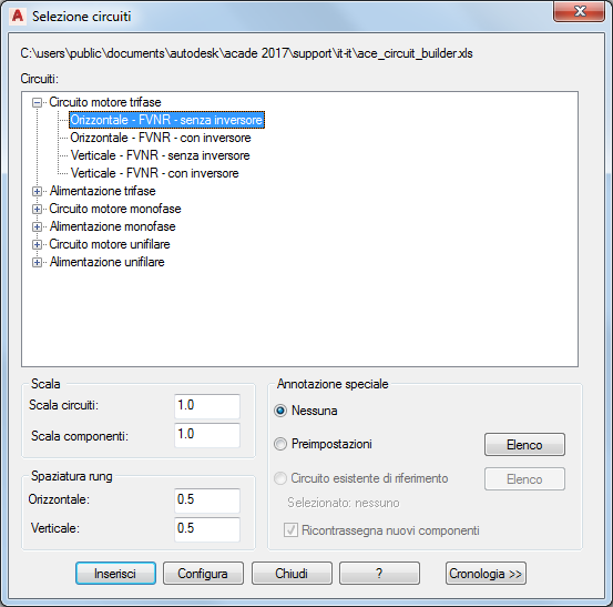 Inserimento e configurazione del circuito