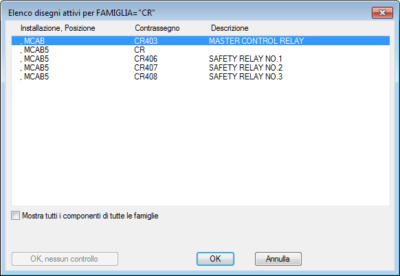 Viene visualizzata la finestra di dialogo Inserisci/Modifica componente secondario. AutoCAD Electrical toolset non ha assegnato automaticamente un nome di contrassegno per il contatto relè; nella casella di modifica è presente solo l'indicazione "CR" generica. Stabilire il nome di contrassegno per il contatto relè. Un contatto relè è un componente secondario che deve essere collegato ad una bobina di commutazione principale in un disegno all'interno del progetto attivo. Il componente secondario ha lo stesso nome di contrassegno utilizzato nella bobina di commutazione principale.