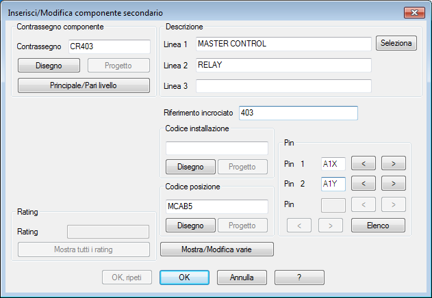 I passaggi per inserire un componente principale e uno secondario sono identici, tranne nel caso in cui viene annotato il simbolo.