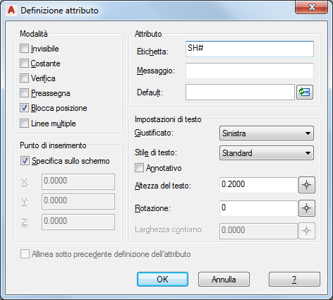 - Immettere DEFATT alla riga di comando per inserire oggetti di definizione attributo.