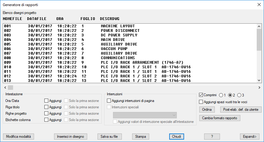 - Fare clic con il pulsante destro del mouse sul nome del progetto o della cartella e selezionare Rapporto elenco disegni.