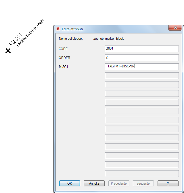 Nota: Il valore di attributo definito nel blocco marcatura sostituisce qualsiasi valore definito nel foglio di calcolo.