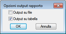 Per le opzioni Output su file e Output su tabella, una x indica che il file di formato contiene una definizione per quel tipo di output e che il tipo di output è selezionato. Una o indica che il file di formato non contiene una definizione per quel tipo di output o che il tipo di output non è selezionato.