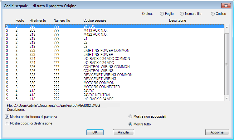 I riferimenti incrociati del segnale vengono inseriti nel disegno al di sopra del filo con carico.
