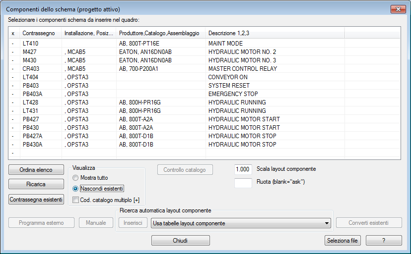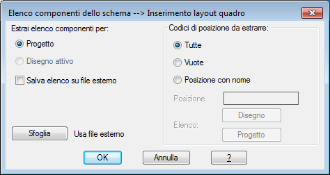 Nella finestra di dialogo Elenco componenti dello schema --> Inserimento layout quadro, verificare: