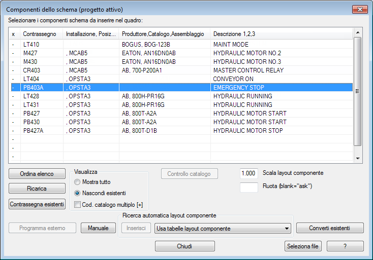 Nota: Il pulsante Manuale viene utilizzato quando i layout componente dello schema non hanno un produttore e un codice di catalogo definiti.