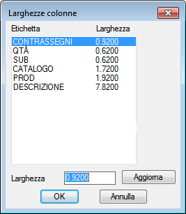 - Apre una finestra di dialogo in cui è possibile definire un valore di larghezza per ogni colonna.