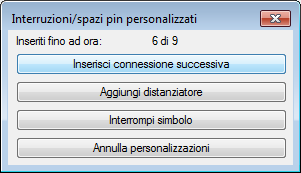 La finestra di dialogo visualizza i pin dei connettori inseriti fino ad ora. Continuare a fare clic su Inserisci connessione successiva finché non vengono inserite 6 delle 9 connessioni.