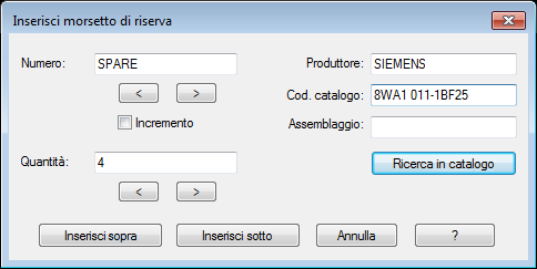 Selezionare la riga sopra alla quale o sotto alla quale si desidera inserire il morsetto di riserva.