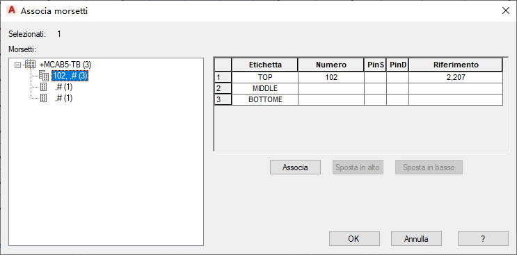 Associazione di morsetti ai morsetti multilivello