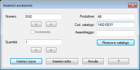 Immettere la quantità di accessori da aggiungere.