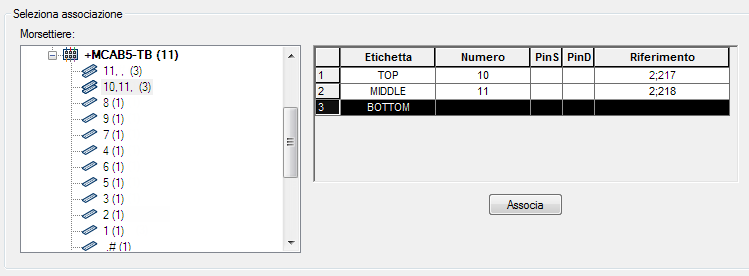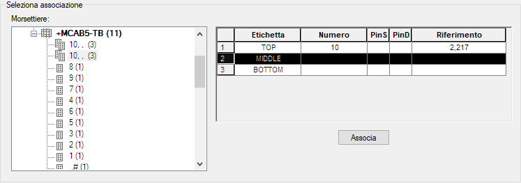 Dopo aver fatto clic su Associa, il livello medio viene aggiornato con il numero di morsetto riportato nella griglia della sezione Associazione attiva della finestra di dialogo.