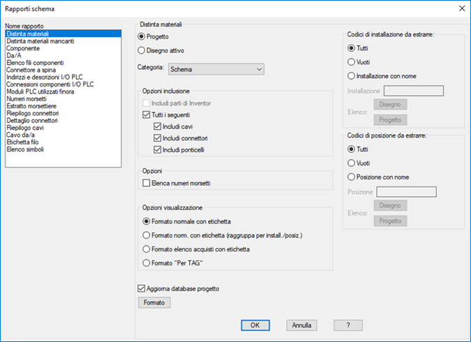 Genera un rapporto estraendo le informazioni dai componenti dello schema e dal cablaggio.