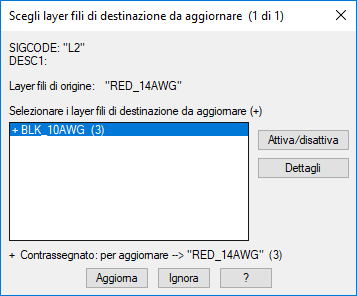 Elenca i fili di destinazione da aggiornare in modo che corrispondano al tipo di filo del layer fili di origine.