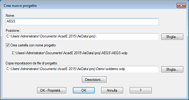 È necessario specificare un nome per definire le proprietà del progetto. Nella casella di modifica non è necessario specificare l'estensione .wdp.