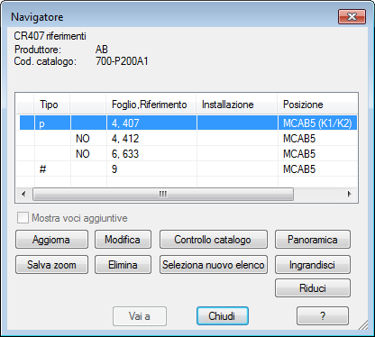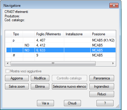 Viene effettuata la navigazione fino all'istanza di CR407 nel foglio 6, che viene visualizzata nel disegno accanto alla finestra di dialogo Naviga.