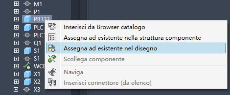 Nel disegno attivo, selezionare il componente elettrico che si desidera collegare alla parte di Inventor. La vista struttura del componente viene aggiornata in modo che venga visualizzato il componente collegato.