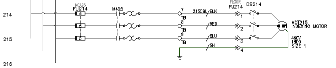 Lo spostamento del circuito motore verso l'alto di una spaziatura di riferimento linea ha reso disponibile una quantità maggiore di spazio per l'aggiunta di un nuovo circuito al di sotto di esso. Il passaggio successivo consiste nell'estendere il bus trifase in basso al riferimento linea 218 e in alto a destra per iniziare la creazione di un nuovo circuito motore.