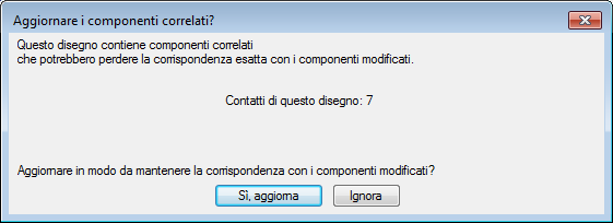 I riferimenti secondari correlati del disegno attivo verranno aggiornati in modo da corrispondere ai componenti principali appena ricontrassegnati.