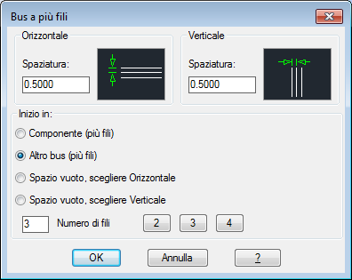 È possibile inserire cablaggi trifase verticali o orizzontali. Il cablaggio trifase si interrompe e si riconnette automaticamente ai componenti sottostanti che incontra lungo il percorso. Se incrocia altri fili, vengono inseriti intervalli di intersezione fili.