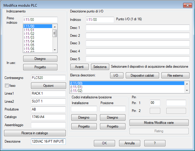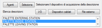Per il primo indirizzo I/O (I:11/00), selezionare la prima descrizione (PALLET IN INGRESSO) nell'elenco dei dispositivi estratti.