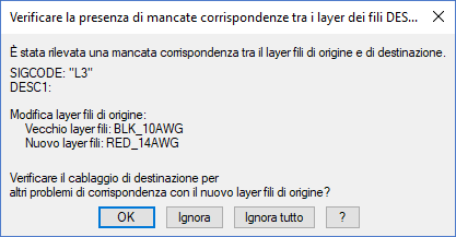 Viene automaticamente creato il nome del layer. Se nelle colonne Colore filo e Dimensione sono stati specificati rispettivamente i valori Red e 20, al layer dei fili creato verrà assegnato il nome RED_20.