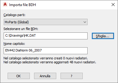 I dati del radiatore nei file BDH sono ricavati da produttori di radiatori, applicazioni per il calcolo del carico del riscaldamento (ad esempio SOLAR COMPUTER Desktop) e software di design per il settore dei radiatori D A CH. I dati del radiatore includono lunghezza, larghezza, altezza, nome dell'azienda e nome della parte. Dopo aver importato un file BDH (.dat), è possibile creare definizioni radiatore nel catalogo MvParts (Global).apc in AutoCAD MEP 2027 toolset. Le parti multivista possono quindi essere utilizzate per modellare forma e dimensioni di parti effettivamente utilizzate nel settore, ad esempio radiatori. In AutoCAD MEP 2027 toolset le parti multivista, ad esempio i radiatori, sono organizzate in base al tipo e i dati corrispondenti vengono memorizzati in cataloghi parti. L'aspetto grafico del radiatore è determinato da un modello di radiatore di default. Il modello si trova in \ProgramData\Autodesk\MEP <versione>\ita\MEPContent\Global\MvParts\Plumbing\Radiators\Radiator Template_gbm.xml. È possibile modificare il modello per cambiare l'aspetto del radiatore. Vedere Archiviazione delle parti catalogo e relativo utilizzo come riferimenti.
