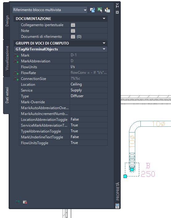 Esempio di dati del gruppo di voci di computo relativi ad un diffusore da soffitto
