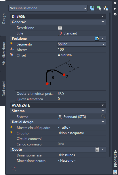 Nel riquadro proprietà verranno inoltre visualizzati gli elementi seguenti:
