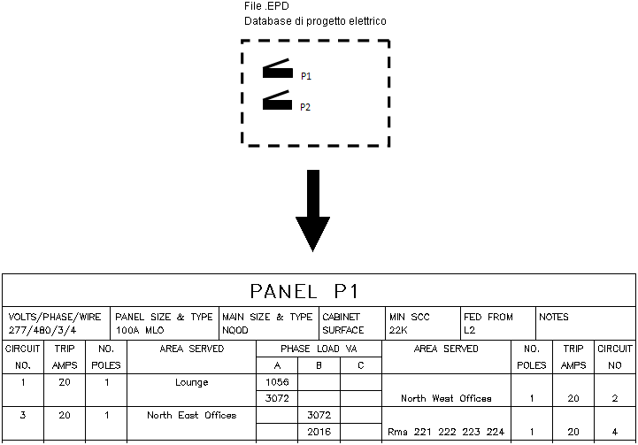 Per i documenti di progetto, i computi dei quadri vengono creati utilizzando il database di progetto elettrico. Inoltre i dati del circuito sono ricavati direttamente dal database di progetto elettrico.
