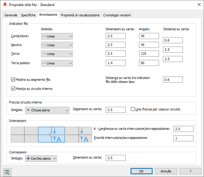 - In Intersezioni, selezionare uno stile per le intersezioni di fili.