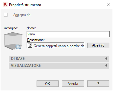 Gli strumenti in genere rappresentano oggetti o voci di contenuto AEC, tuttavia è possibile creare anche uno strumento per comandi.