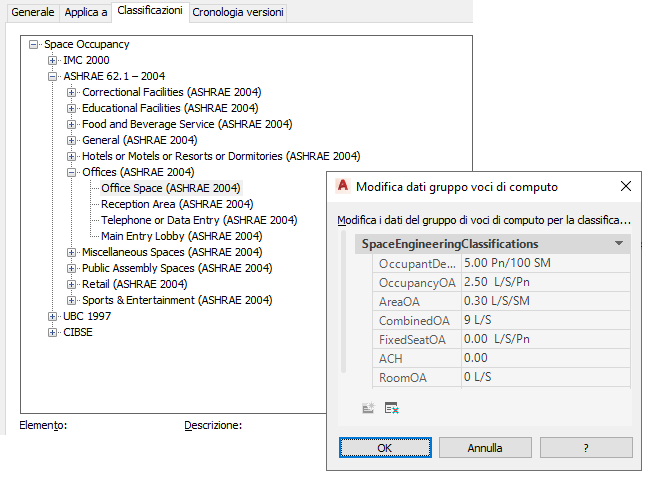 Come visualizzare le definizioni di classificazione per densità di occupazione e flussi d'aria