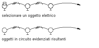 È possibile utilizzare il comando Mostra dispositivi in circuito per evidenziare tutti i dispositivi che appartengono allo stesso circuito. Questa funzione consente di individuare nel disegno corrente tutti i dispositivi connessi allo stesso circuito.
