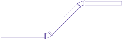 AutoCAD MEP 2027 toolsetLa pendenza viene applicata nella direzione Z del sistema di coordinate dell'utente (UCS) corrente nel disegno. I sistemi di tubature in pendenza vengono creati utilizzando raccordi a gomito, a T, a Y o di altro tipo che connettono un segmento angolato ad un segmento orizzontale. Il seguente esempio illustra un rapporto di percentuale di inclinazione di 3/10 per il segmento in pendenza in cui i gomiti vengono ruotati in base al valore di pendenza.